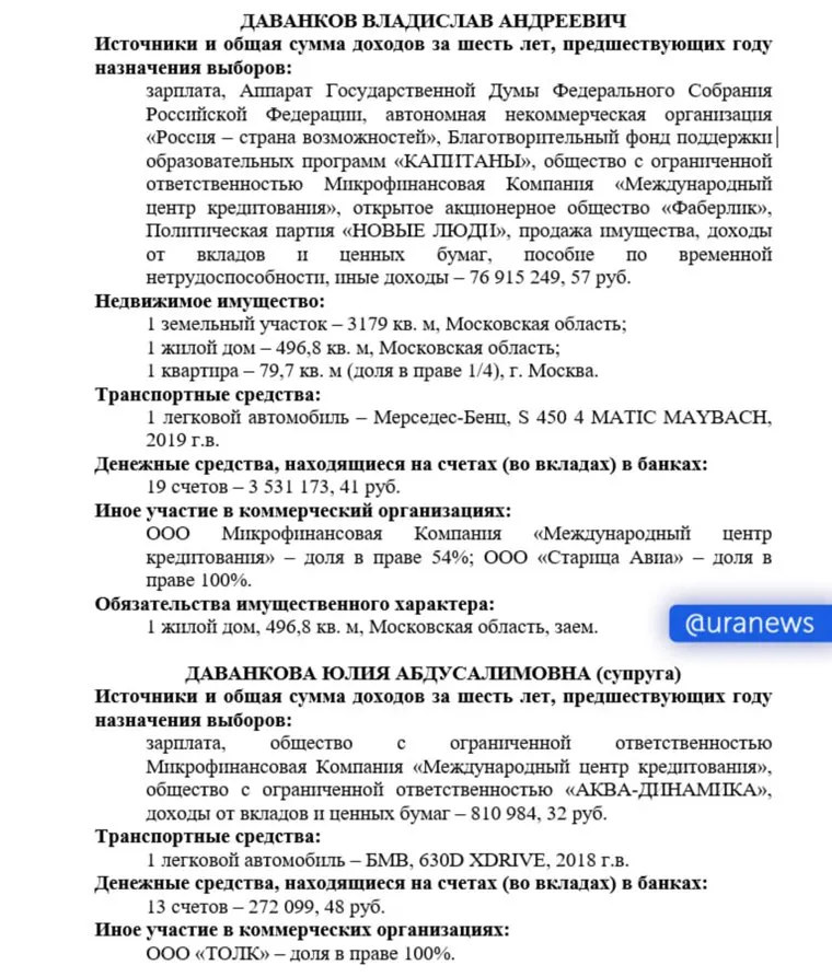 Кандидат от «Новых людей» заработал 76,9 миллиона рублей за шесть лет. У него есть участок, дом, квартира и автомобиль Maybach. На счетах в банках лежит 3,5 миллиона рублей.