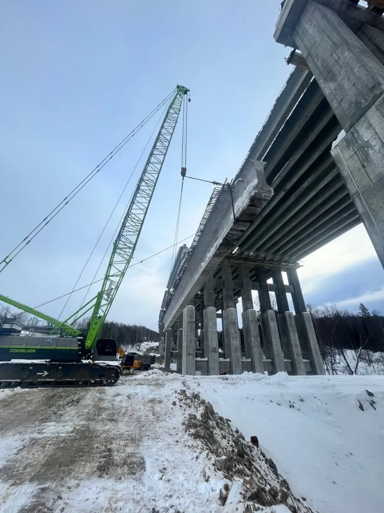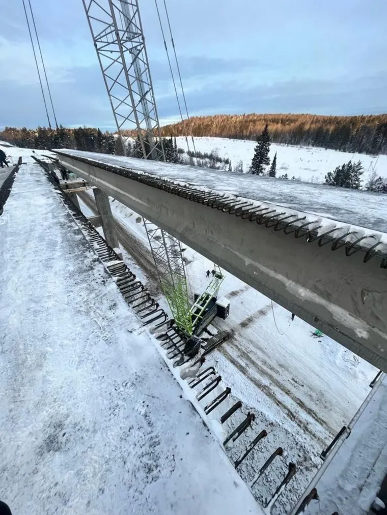 Протяженность эстакады составила 560 метров. В сооружение уже установлена последняя из 238 железобетонных балок. Сейчас продолжаются работы по объединению пролетных строений.