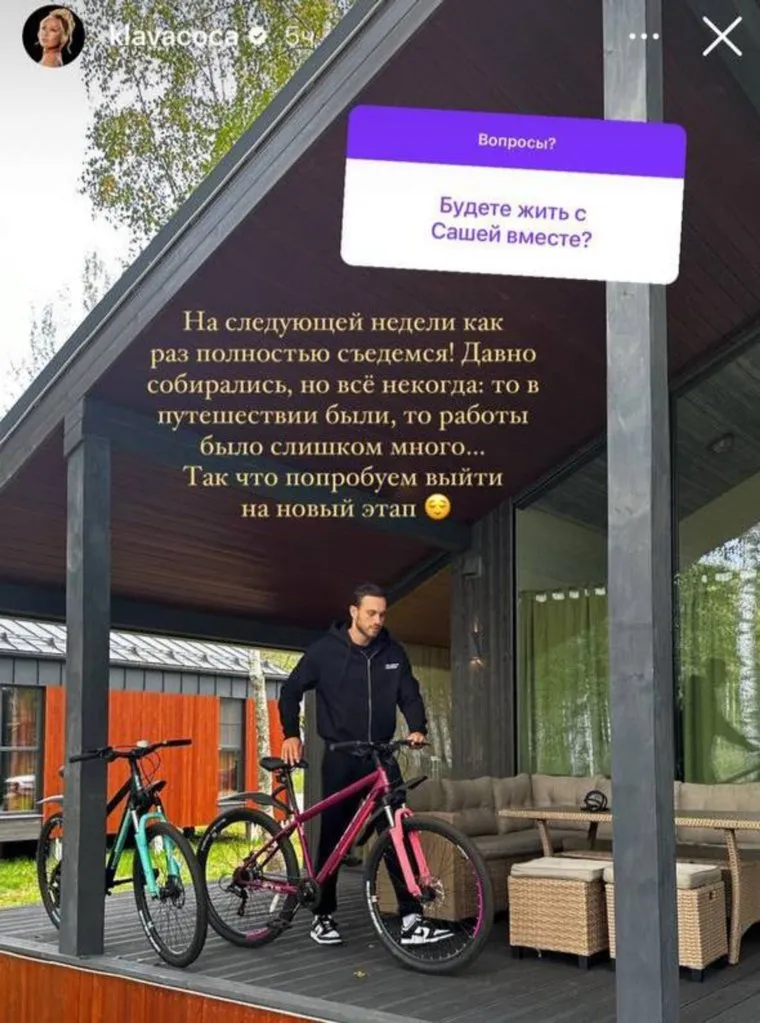 На вопрос подписчика о том, будет ли она жить с Александром, Клава ответила: «На следующей неделе как раз полностью съедемся! Давно собирались, но все некогда: то в путешествии были, то работы было слишком много… Так что попробуем выйти на новый этап», — делится певица на своей странице в Instagram (принадлежит компании Meta, признанной экстремистской и запрещенной в РФ).