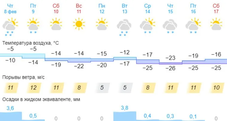 «После 14 февраля ожидаются морозы. Их пик придется на 15—17 февраля. Ночью до -25…-30 градусов. К началу третьей декады февраля потеплеет», — поделился с URA.RU прогнозами Винштейн.