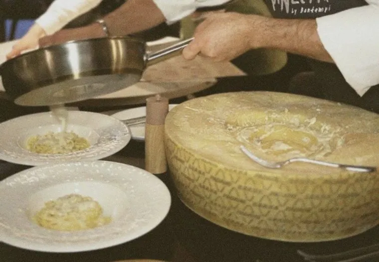 В сургутском ресторане «Pinzeria by Bontempi» на глазах у гостей шеф-повара готовят пасту прямо в огромной сырной голове