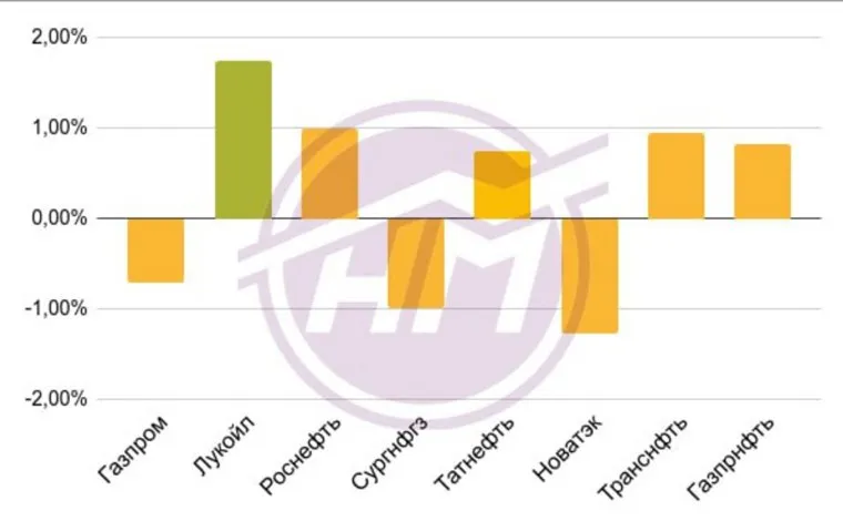«Наибольший рост стоимости акций за прошедшую торговую неделю продемонстрировало ПАО „Лукойл“. Ценные бумаги компании выросли на 1,75%: с 7114 до 7238,5 рубля», — указано в telegram-канале «НААНС-МЕДИА».