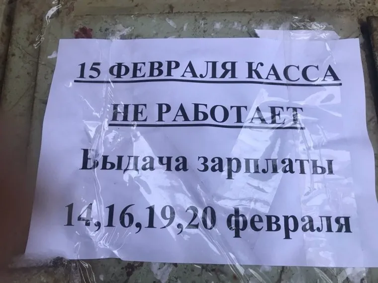 «Выдача заработной платы будет производиться в кассе завода 14, 16 февраля и т. д. 15 февраля касса завода не работает», — говорится в одном объявлении. «15 февраля касса не работает. Выдача зарплаты 14, 16, 19, 20 февраля», — сказано в другом. В пресс-службе УВЗ на запрос корреспондента пока не ответили.