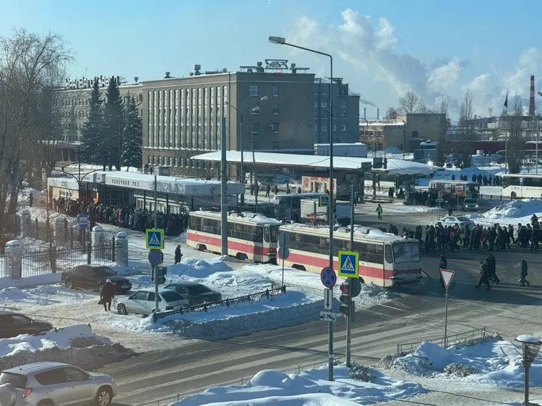 19:49 В Telegram распространяется фото, сделанное якобы сегодня возле УВЗ около 14:00. На нем — полная трамвайная остановка.