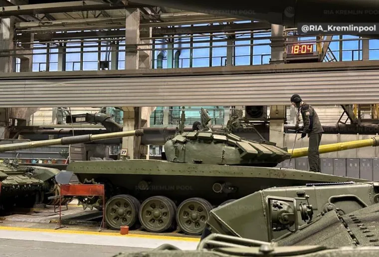 20:33 На УВЗ Путину показали готовые к отправке в войска современные танки Т-72БЗМ и Т-90М «Прорыв». Работа в цеху остановилась лишь на пару минут, рабочие с президентом, пишет telegram-канал RIA_Kremlinpool.