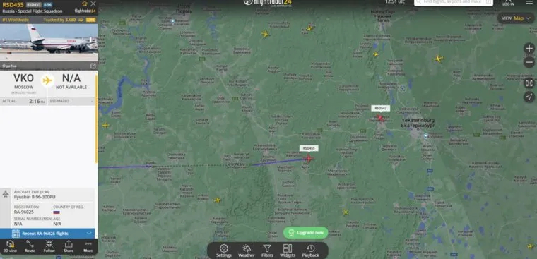 17:52 В сторону Екатеринбурга направляются еще два спецборта. Это следует из данных Flightradar24.