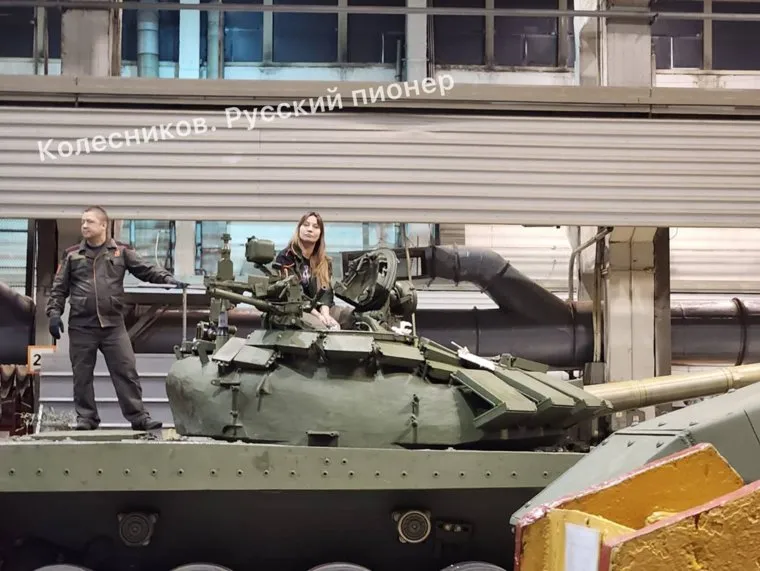19:31 Тем временем корреспондент «Коммерсанта» Александр Колесников опубликовал еще одно фото с УВЗ. На кадре — девушка, которая занимается ремонтом танка.
