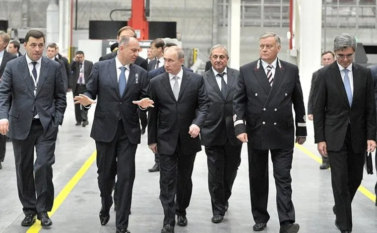 22:38 Президент Свердловского областного союза промышленников и предпринимателей Дмитрий Пумпянский и председатель совета директоров группы компаний «Синара» Михаил Ходоровский прямо сейчас знакомят Путина с производством на «Уральских локомотивах». Видео появилось в telegram-канале Зарубина.