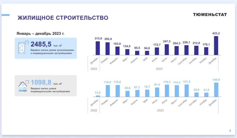 «В декабре 2023 года введено в эксплуатацию 140 тысяч квадратных метров индивидуального жилья. Это в 10 раз выше показателей 2022 года. Всего за 2023 год индивидуальные застройщики ввели в эксплуатацию почти 1,1 млн квадратных метров», — поясняет приложенная к рассылке инфографика.