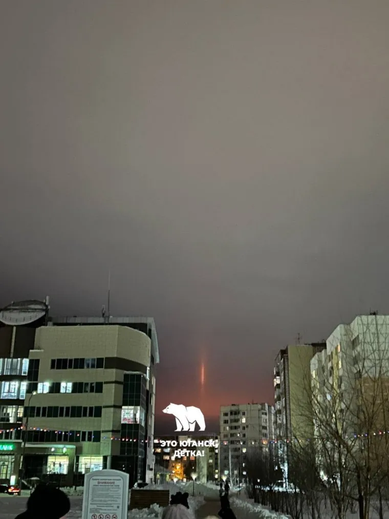 На самом деле явление, которое наблюдают местные жители, называется световым или солнечным столбом. Это визуальное атмосферное явление, которое представляет собой вертикальную полосу света. Такие столбы обычно тянутся вверх от Солнца, когда оно вступает в фазу заката или восхода, но могут появляться и ночью, исходя от Луны, ярких планет и наземных источников света. Как правило, оптический эффект появляется при отражении лучей от ледяных кристаллов, которые парят в воздухе.