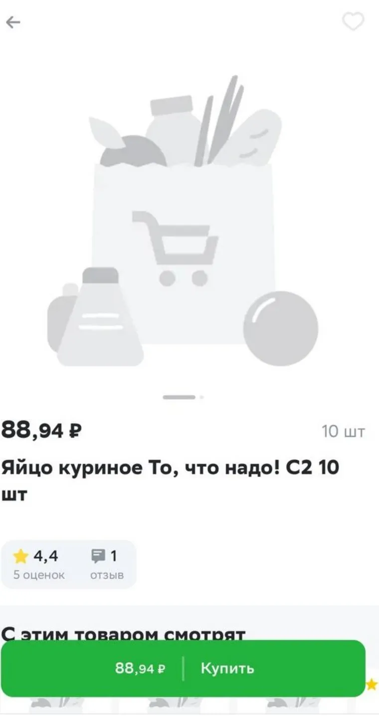 «Яйцо куриное „То, что надо“. С2, 10 штук. Стоимость: 88 рублей, 94 копейки», такая цена представлена на одном из онлайн-сервисов по доставке продуктов. Стоимость одного яйца — 8,8 рублей.