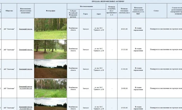 Роскосмос выставил на продажу 36 непрофильных челябинских активов. Скрин