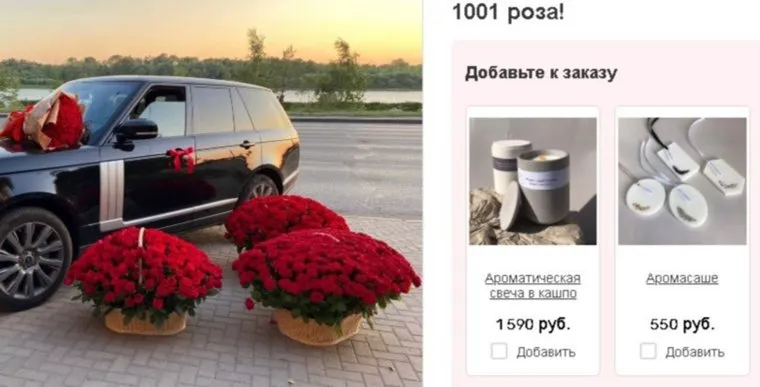 «1001 роза, 94 999 рублей», — указано на сайте салона. При этом букет из 101 розы можно заказать за 17 тысяч рублей.