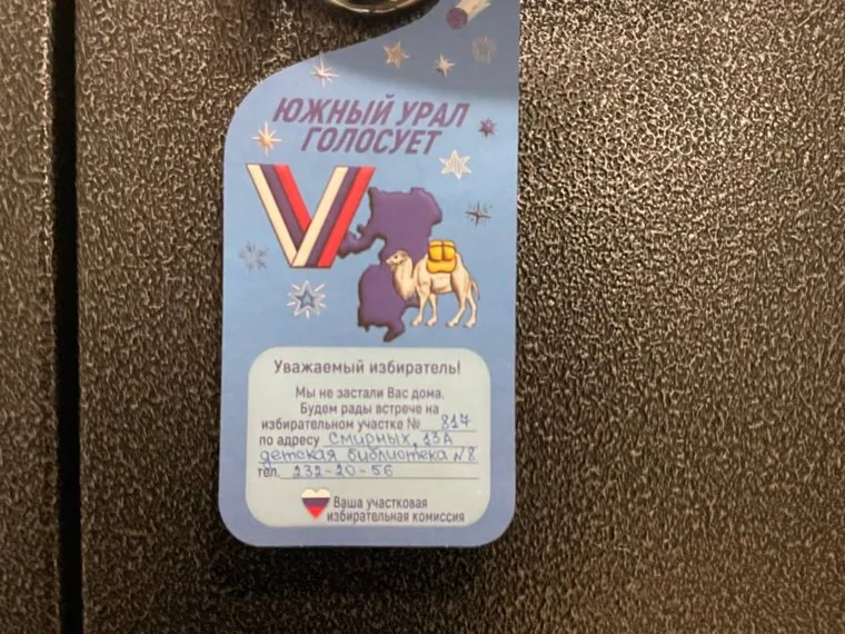 - Правильно придумали02 марта 2024 15:34Очень удобно придумали в Челябинской области с такими бирками, не то, что в соседней Курганской, там нет никаких бирок, только буклеты бумажные, а как их на дверь прикрепить или на ручку?, Их даже сложно оставить у частного дома, где нет даже почтовых ящиков. Видимо в Челябинской области в избиркоме есть люди, которые думают головой лучше.