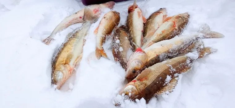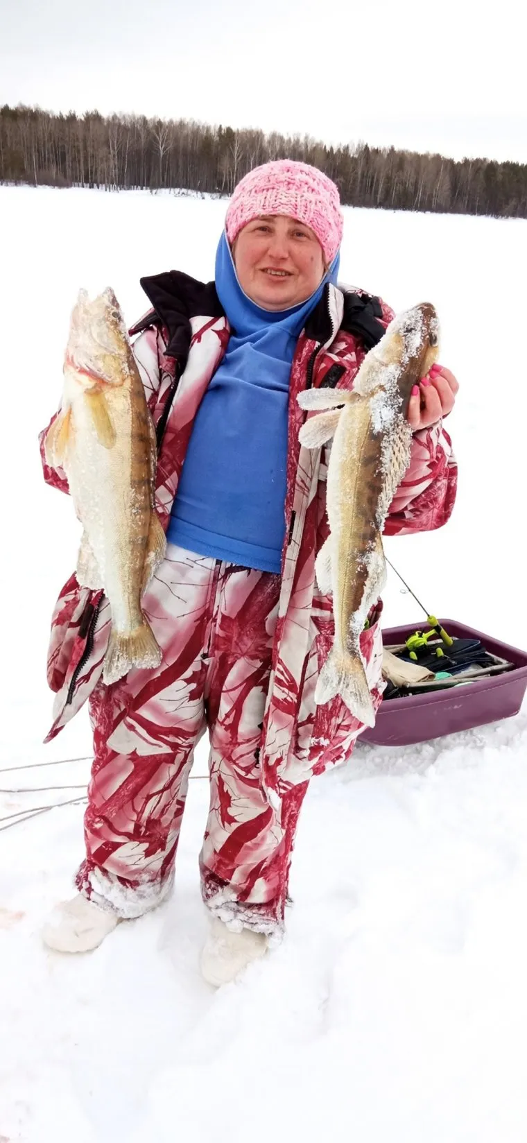 Пермская рыбачка подарила мужу на день рождения улов из судаков. Фото