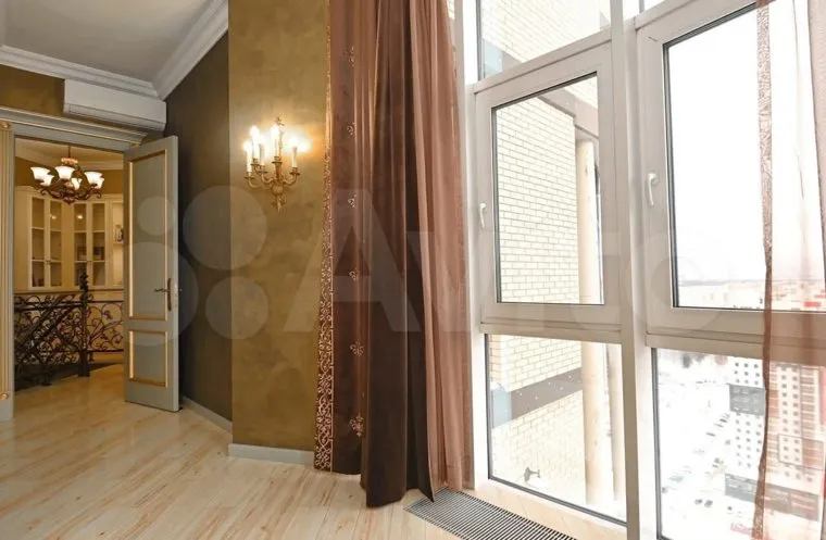 «Двухэтажный пентхаус, дизайн выполнен с элементами дворцовой классики. Стоимость — 36 миллионов рублей», — указано в объявлении сервиса «Авито». В квартире высокие потолки почти в четыре метра, а во всех комнатах сделаны панорамные окна.