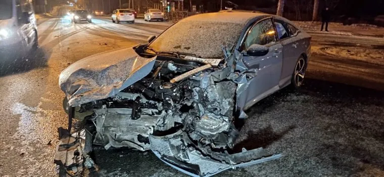 В Екатеринбурге вечером 11 марта на перекрестке улиц Грибоедова — Пархоменко пьяный водитель на Honda проехал на красный свет и врезался в Toyota Land Cruiser Prado, проезжающий на зеленый. В результате ДТП пострадали оба водителя. Об этом URA.RU рассказал очевидец.