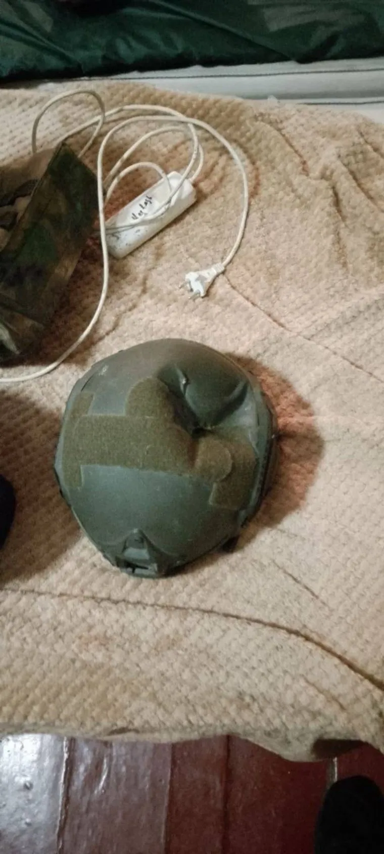 Шлем получил серьезное повреждение, но сохранил жизнь штурмовику