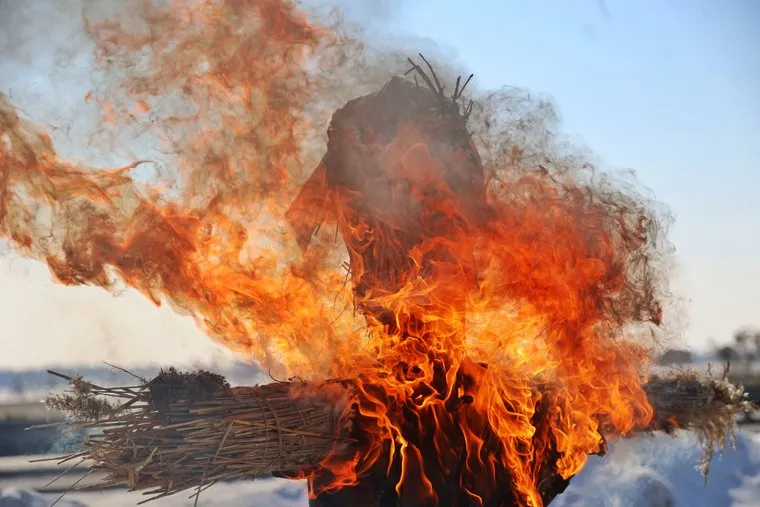 Накануне Масленицы на курганской трассе сожгли традиционное чучело