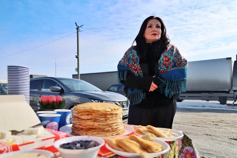Курганцы накормили блинами водителей фур на образцовом дорожном комплексе. Фото, видео