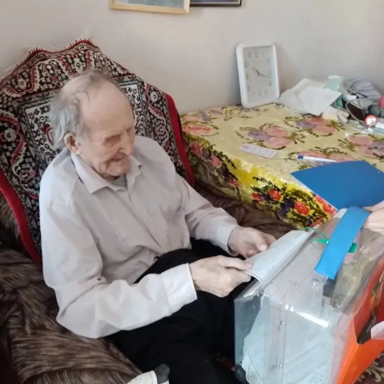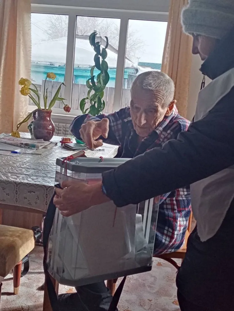 В голосовании на президентских выборах принял участие ветеран ВОВ Семен Благинин