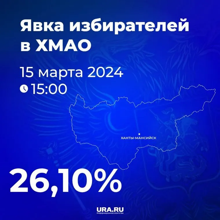 15:44 На выборах президента России в ХМАО проголосовали 293 941 человек по состоянию на 15:00. Это 26,10% от числа избирателей в регионе, сообщает telegram-канал окружного избиркома.