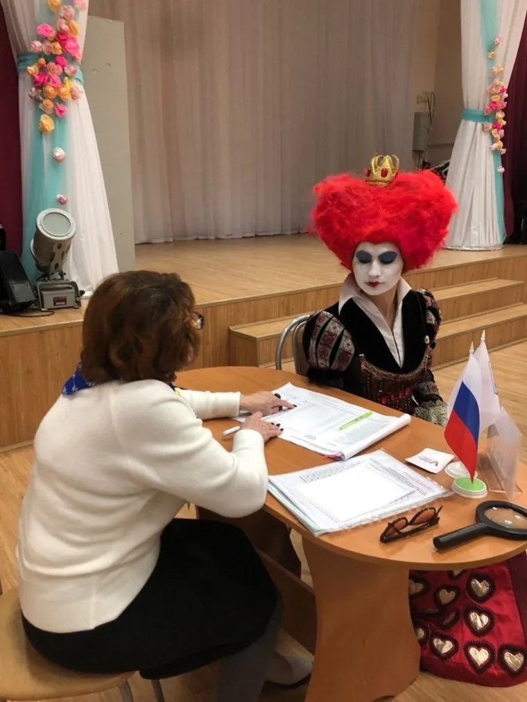 11:41 В Нефтеюганске на выборы пришла избирательница в образе Красной Королевы из сказки «Алиса в стране чудес». Как сообщили в tg-канале горадминистрации, сказочного персонажа заметили на избирательном участке в КЦ «Юность».