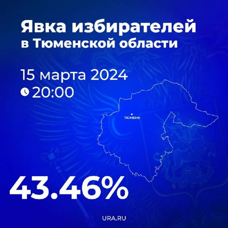20:51 Явка на выборах президента РФ в Тюменской области по итогам 15 марта составила 43,46%. Свои голоса за кандидатов отдали 511 787 избирателей.