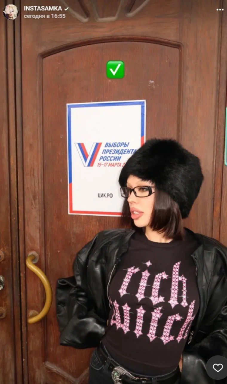 17:34 Исполнительница Инстасамка (уроженка Тобольска Дарья Зотеева) выложила в своих социальных сетях фото на фоне плаката, информирующего о выборах президента. На снимке также есть галочка, которой девушка может намекать на то, что тоже проголосовала.