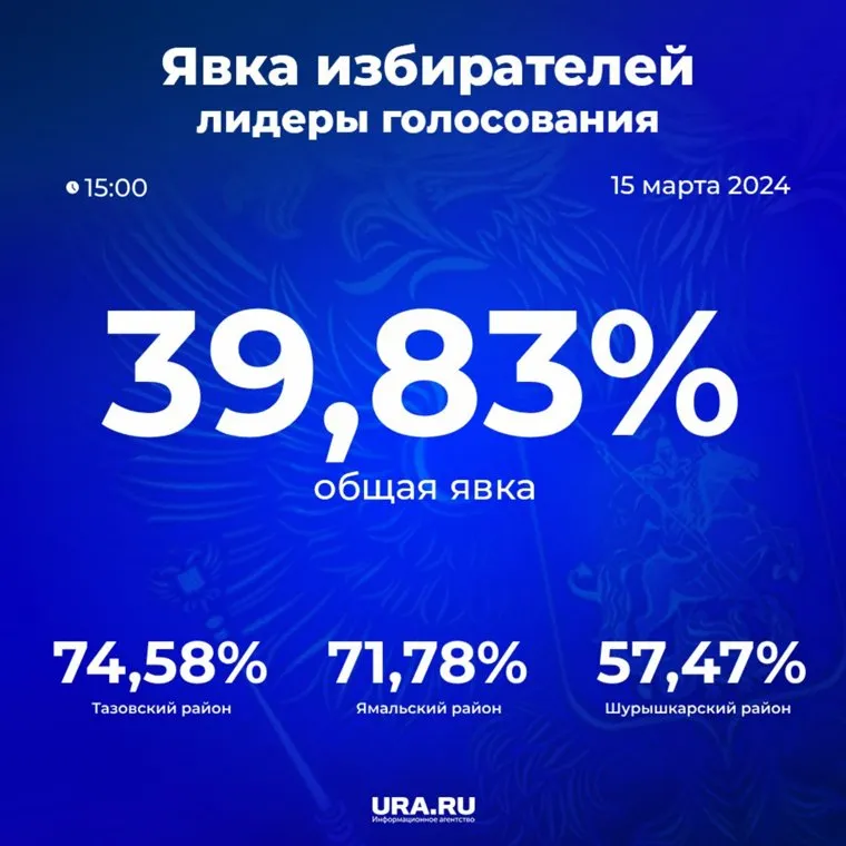 Явка избирателей в ЯНАО на 15 часов 15 марта