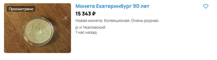 Фото: сайт "Авито" https://www.avito.ru/ekaterinburg?cd=1&q=монеты+свердловская+область