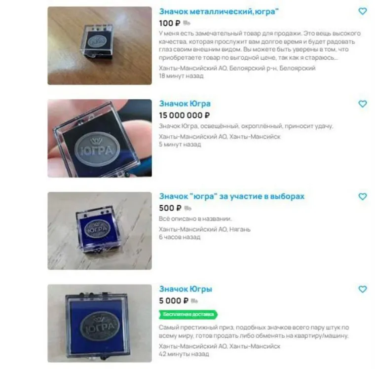 Фото: Фото: сриншот с сайта «Авито» (https://www.avito.ru/surgut?q=значок+югра)