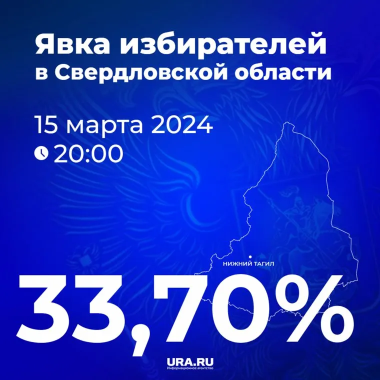 Явка на выборах президента в Свердловской области на 20:00 часов местного времени достигла 33,70%. Эту информацию опубликовал свердловский избирком в telegram-канале.