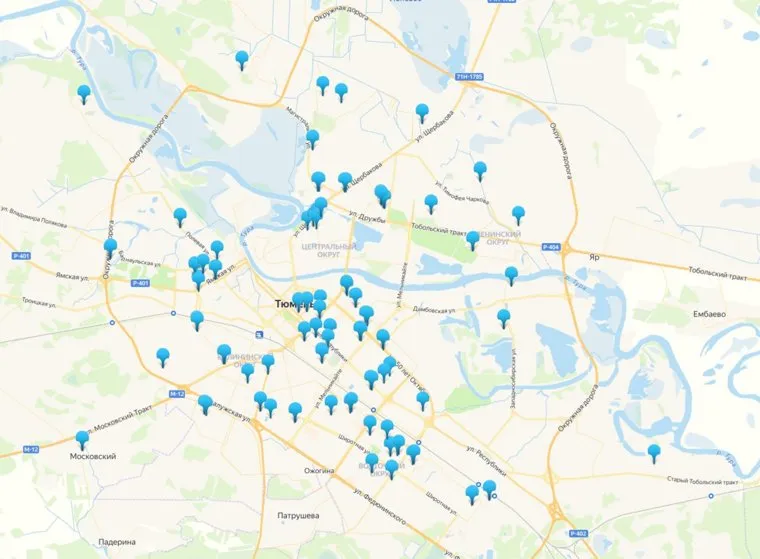 - площадки ТИУ и другие точки.