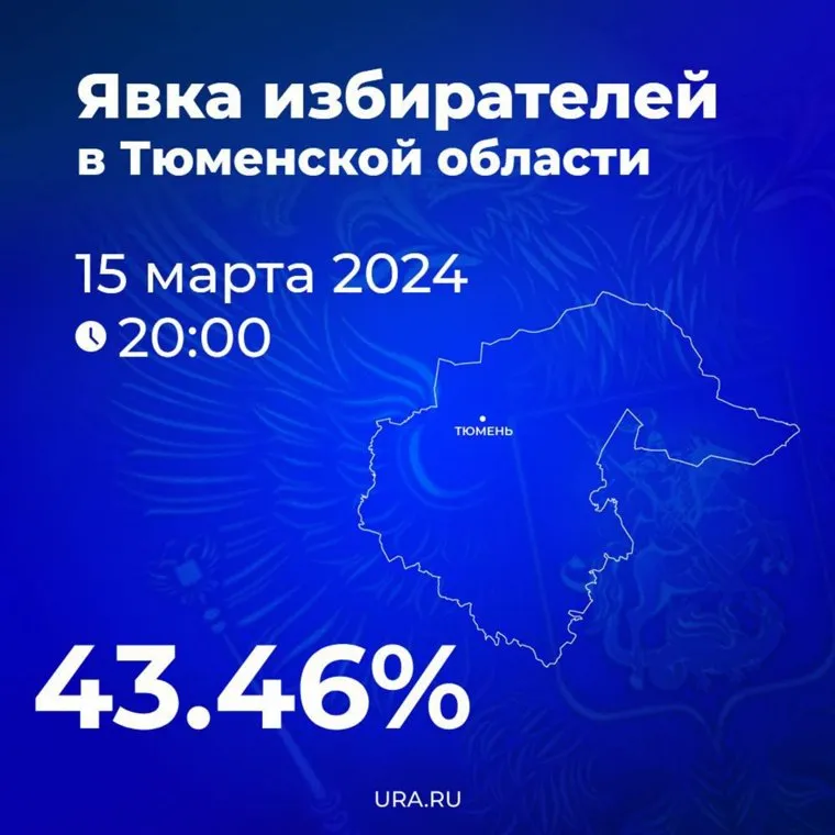 08:01 Явка избирателей в Тюменской области по итогам первого дня голосования составила 43,36%.
