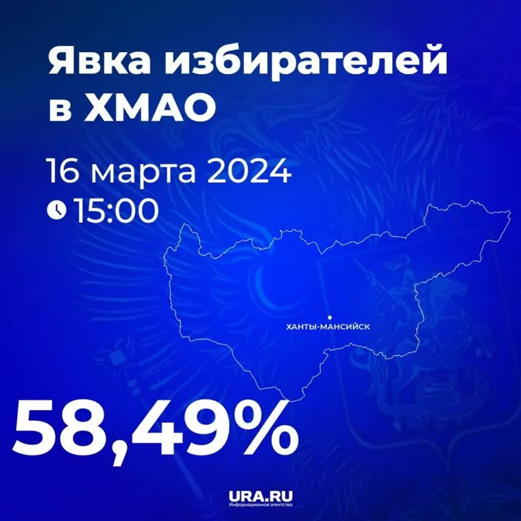 «По состоянию на 15.00 на выборах президента Российской Федерации в Югре проголосовали 659 703 человека. Что составляет 58,49% от общего количества избирателей», — указано в публикации
