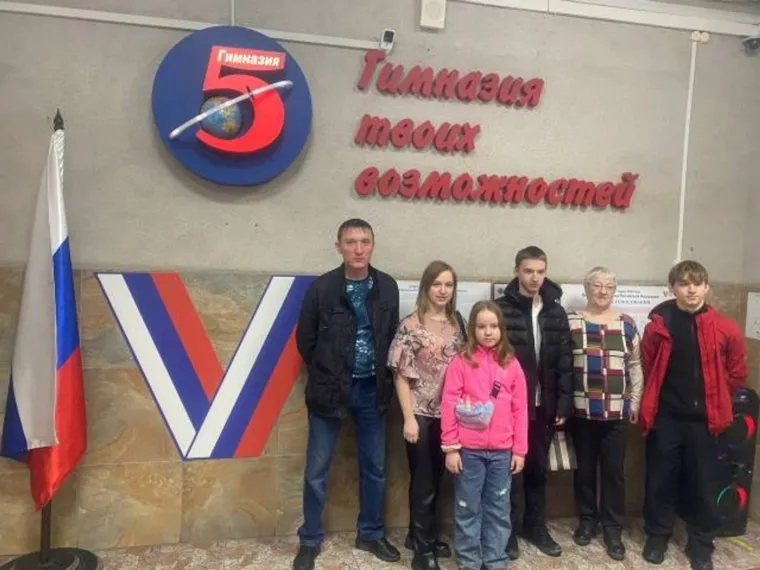 Семья Мясниковых на избирательном участке, расположенном в гимназии №5