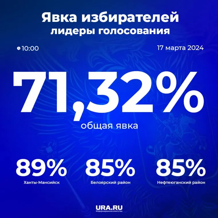 Явка на выборах президента РФ в столице ХМАО приблизилась к 90%. Инфографика
