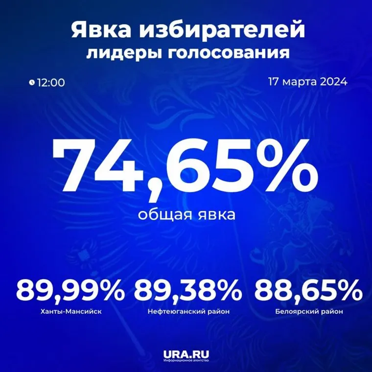 Явка избирателей в ХМАО на выборах президента РФ приблизилась к 75%. Инфографика