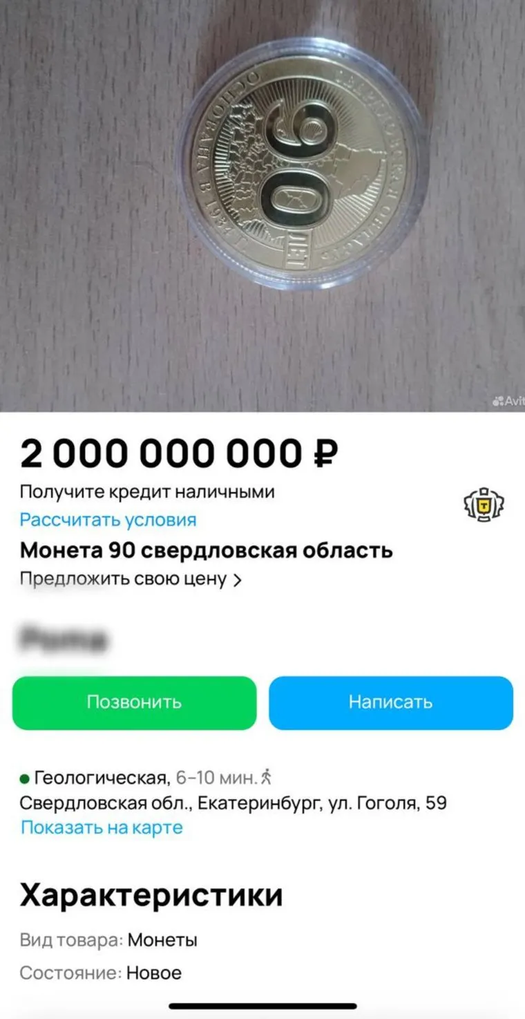 Фото: Фото: сайт «Авито», https://www.avito.ru/ekaterinburg/kollektsionirovanie/moneta_90_sverdlovskaya_oblast_3746833636?utm_campaign=native&utm_medium=item_page_ios&utm_source=soc_sharing
