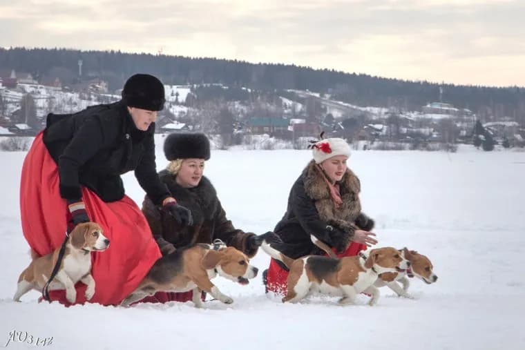 «Подарком для гостей стала реконструкция барской псовой охоты 18-19 вв., бега русских борзых и обаятельных биглей на заснеженном льду Обвы. „Охотились“ не ради добычи, а ради захватывающего зрелища, выясняя, чьи собачки резвее», — пишет Уткин в своем канале на Дзен.