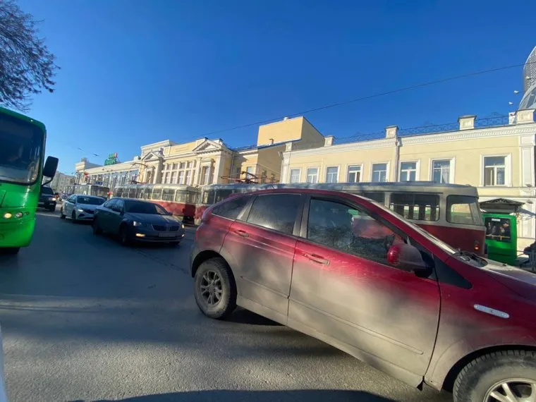 В центре Екатеринбурга ДТП парализовало движение трамваев. Фото
