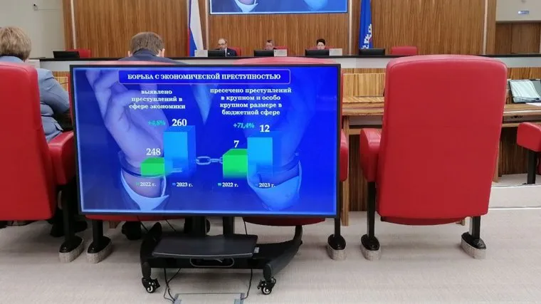 «В округе в 2023 году выявлено 260 преступлений в сфере экономики, что на 4,8% больше по сравнению с предыдущим периодом, пресечено 12 преступлений в крупном и особо крупном размере в бюджетной сфере, что на 71% больше, чем в предыдущем периоде. Средний размер взятки составляет 1,3 миллиона рублей», — сообщил Сергей Костенко в отчетном докладе на заседании окружного Заксобрания, передает корреспондент агентства.
