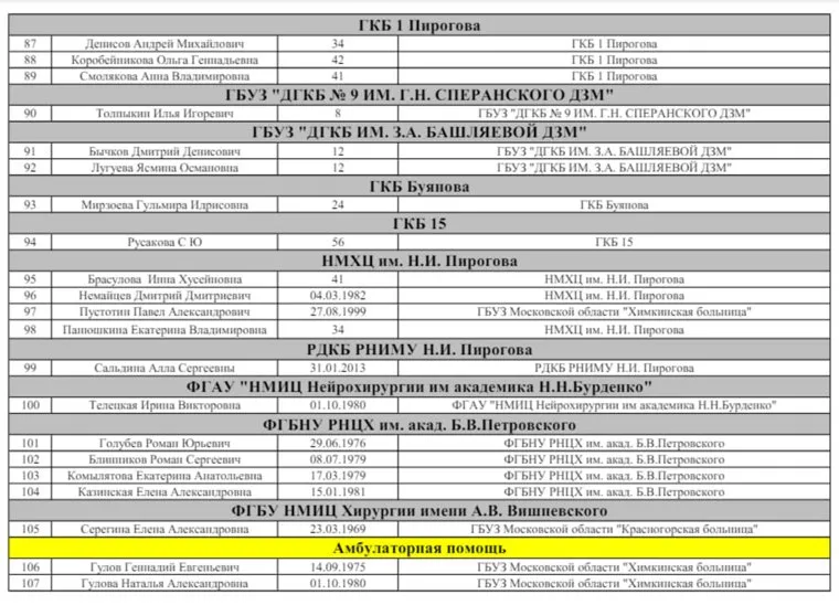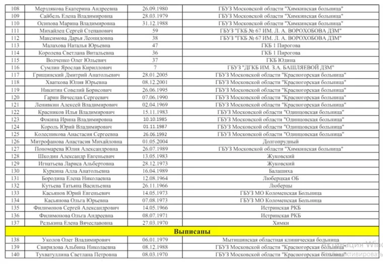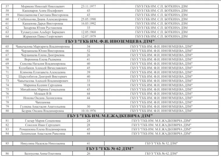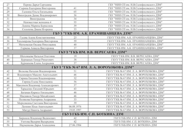 В списках значатся лица, находящиеся в ГБУЗ «НИИ скорой помощи им. Н.В. Склифосовского»