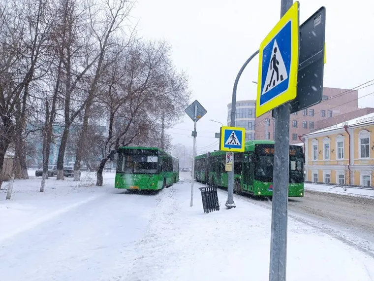 В Тюмени рейсовый автобус вынесло на тротуар. Фото