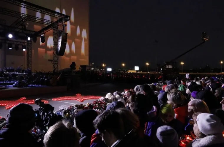 Россияне под дождем смотрели концерт в память о погибших в теракте в «Крокусе». Фоторепортаж