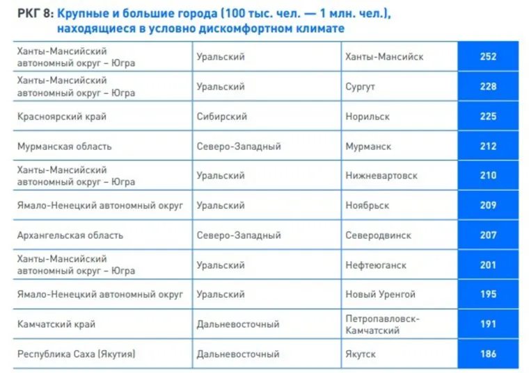«Среди городов с населением от 100 тысяч до одного млн человек комфортными признаны Ханты-Мансийск, Сургут, Норильск, Мурманск, Нижневартовск», — сообщили на сайте Минстроя. Ханты-Мансийск набрал 252 балла из возможных 360.