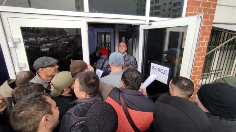 Толпа мигрантов «штурмует» отделение ГИБДД в Екатеринбурге. Фото, видео