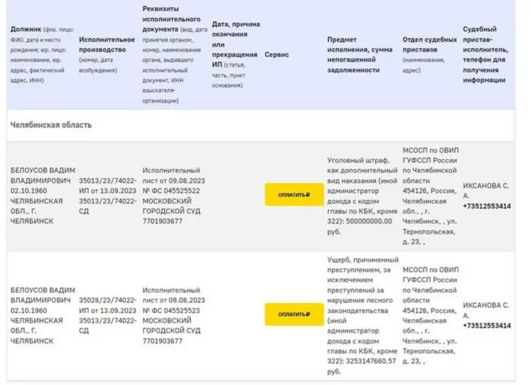 Приставы перестали требовать с экс-совладельца «Макфы» Белоусова 4 млрд рублей. Скрин