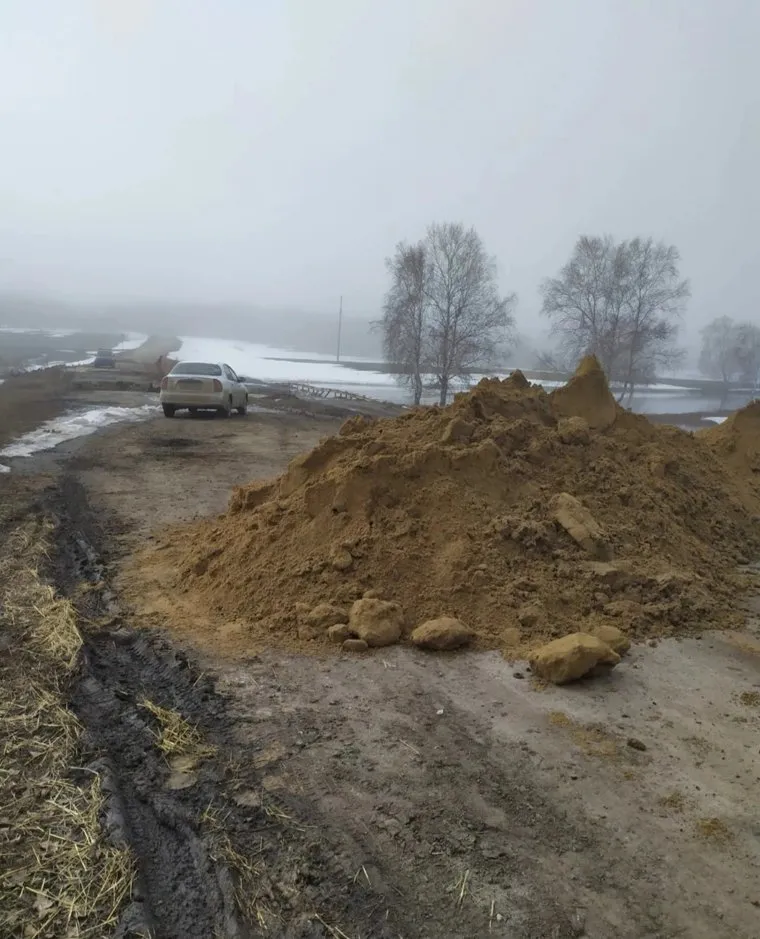 К дороге подвозят песок, чтобы начать работы на размытом участке